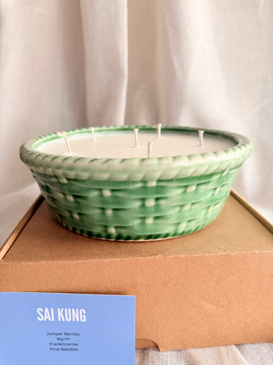 Fine porcelain Phoenix and dragon 3 wicks bowl candle