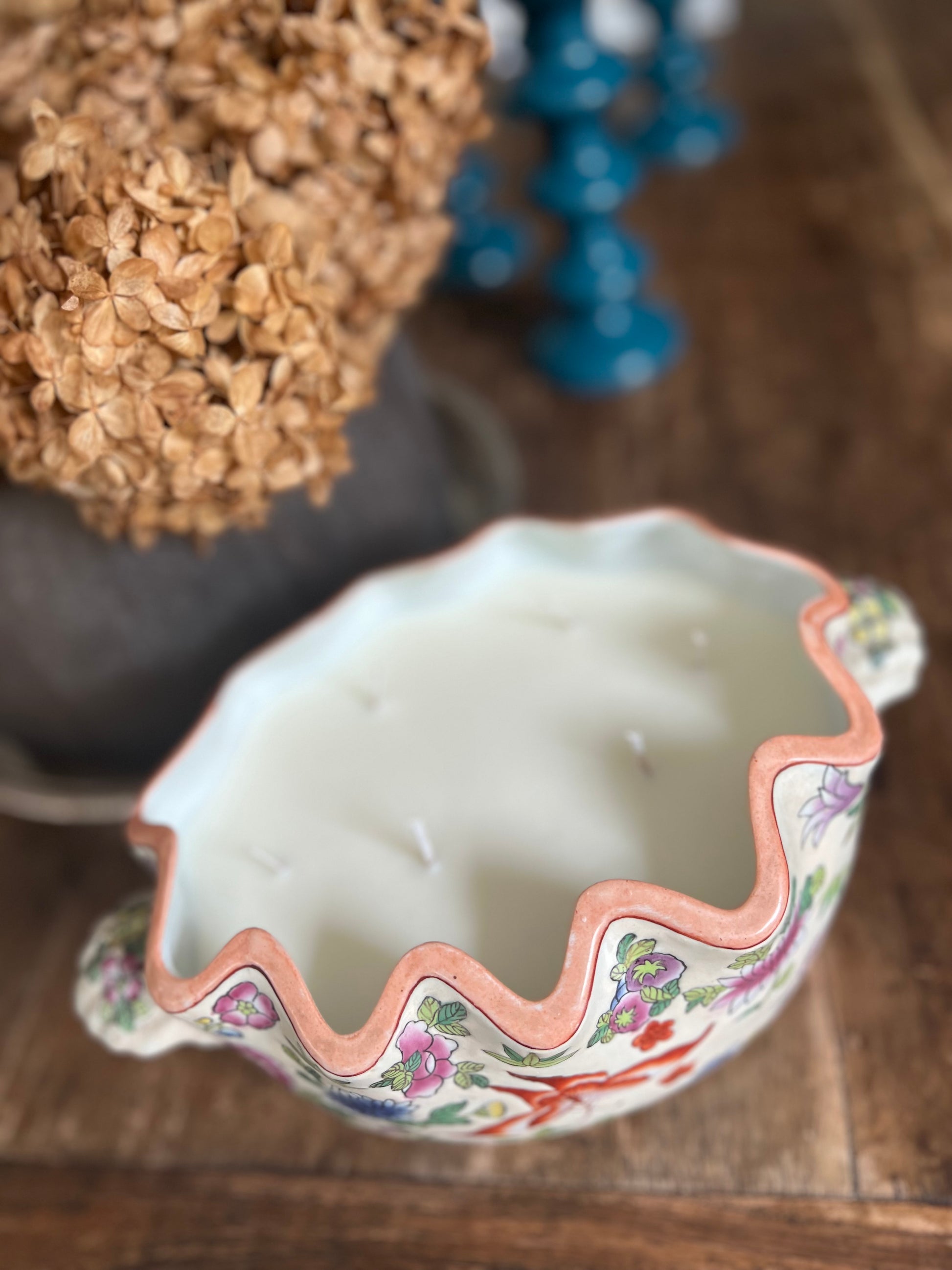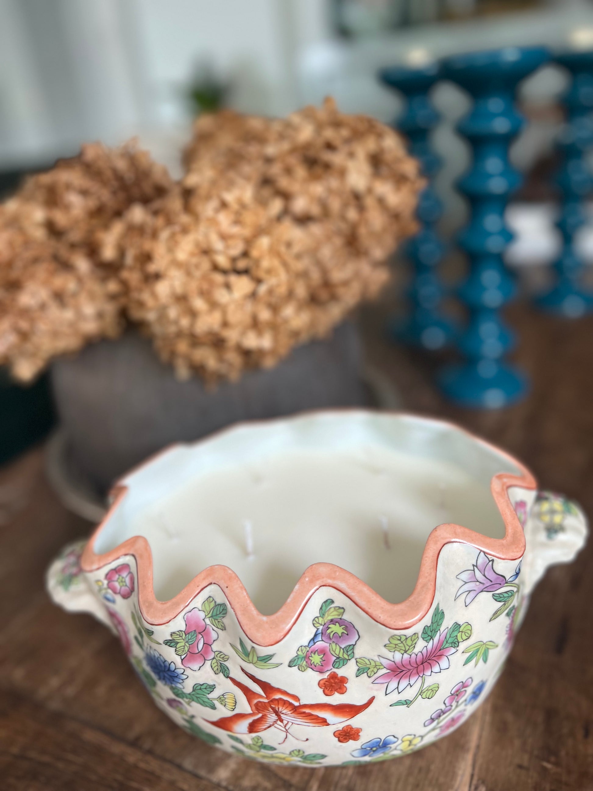 Pastel flowers and butterflies hand-painted 6 wicks Candle