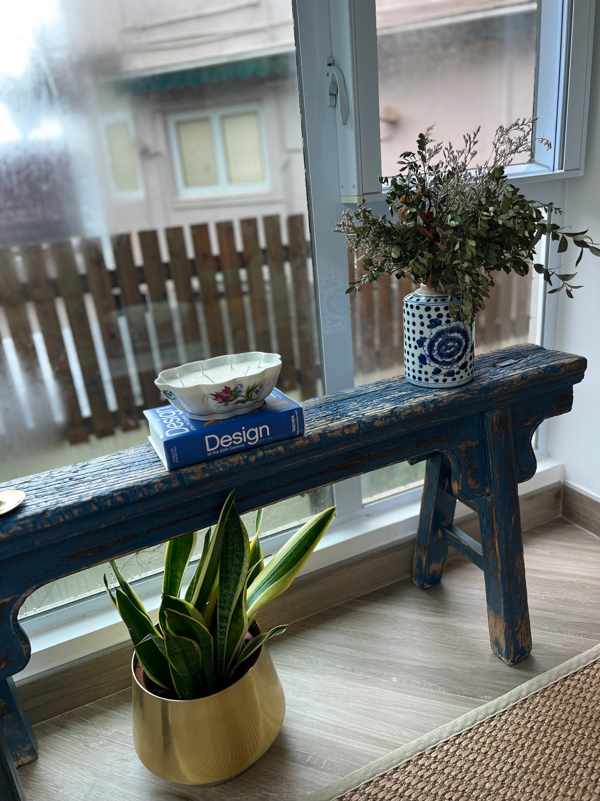 Blue antique Chinese bench